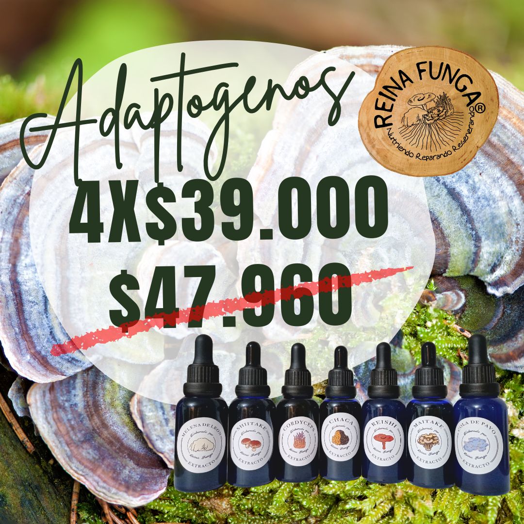 Todos nuestros extractos de hongos: Melena de León, Cordyceps, Reishi, Cola de Pavo, Shiitake, Chaga, Maitake y Plantas Adaptógenas Schisandra, Ashwagandha y Panax Gingsen, Rhodiola Rosea con descuentos!!! EXTRACTOS DE 30ML!